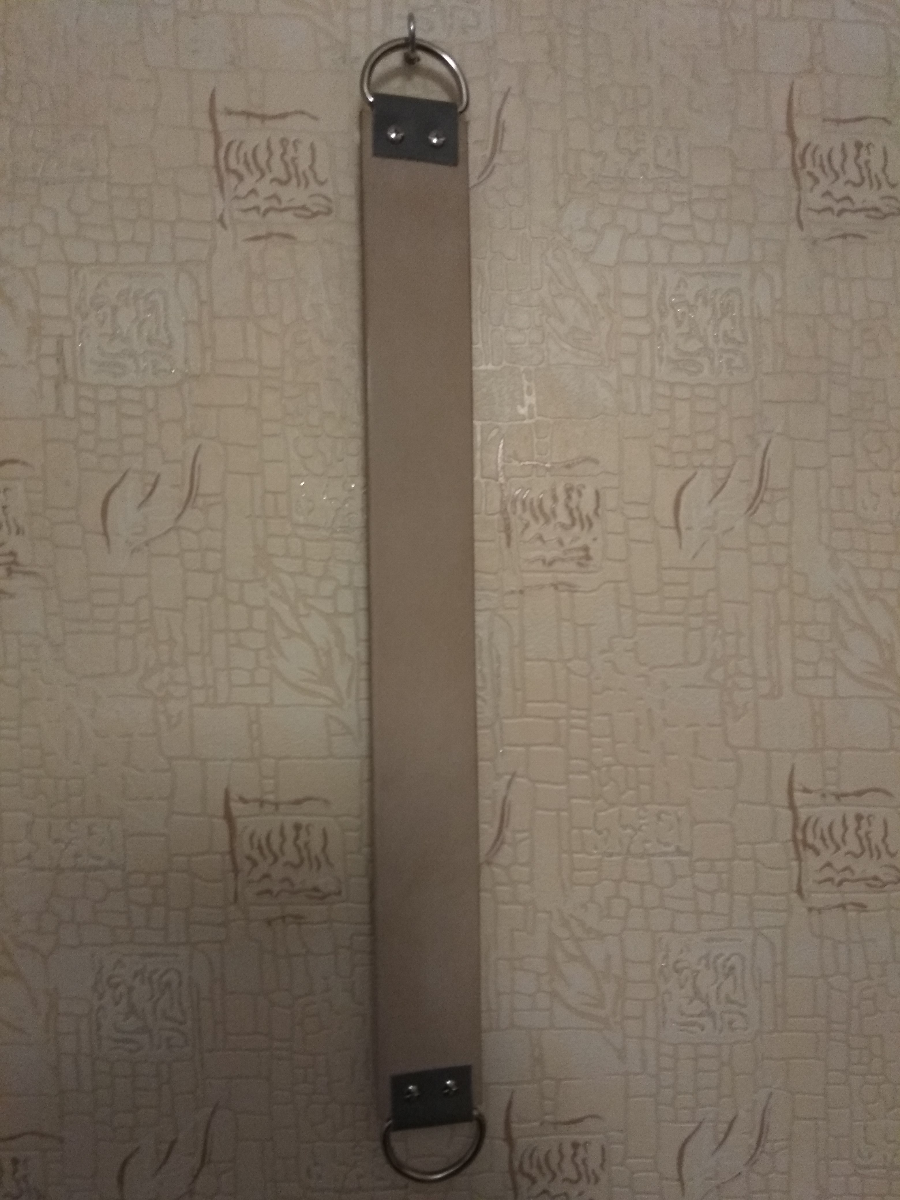 Изготовление ремней для правкиВзял буйволиную растишку от Мони. Вырезал полосу 600х60х2мм. Вышкурил 180-2000. Покрыл костным маслом. Прилепил фурнитуру. Работает. Не могу сравнить с канаямой, т.к. нету.