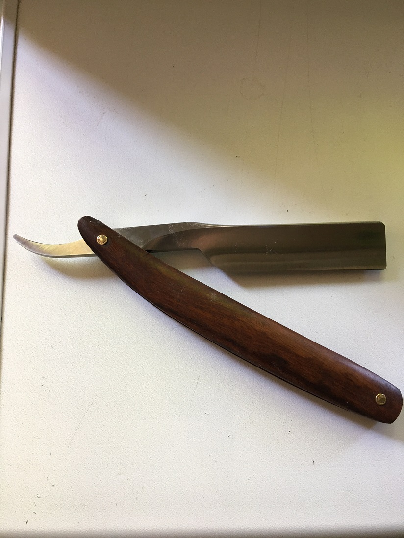 Мечтаю изготовить бритвуну совсем страшной Аптекарь мог побрезговать бриться, потому пришлось немного подмарафетить, но, скажем так, продавать такое я бы не стал, ну или за совсем дешево. Если не ошибаюсь это одна из двух брит из одного куска углеродки - одна была 1 к 4 обух-ширина и твердости за 60 далеко, а вторая с большим углом, но твердости 59 по моему было. Та которая мягче бреет не хуже, а может и лучше, но точится и правиться приятнее. Так что если обух миллиметров 6 и ширина около 20 , то у вас нестандартно мягкая бритва, потому и на старых англичан похожая, за 60 твердости позже калить стали Если у человека нет чувства юмора , у него должно быть чувство что у него нет чувства юмора (с)