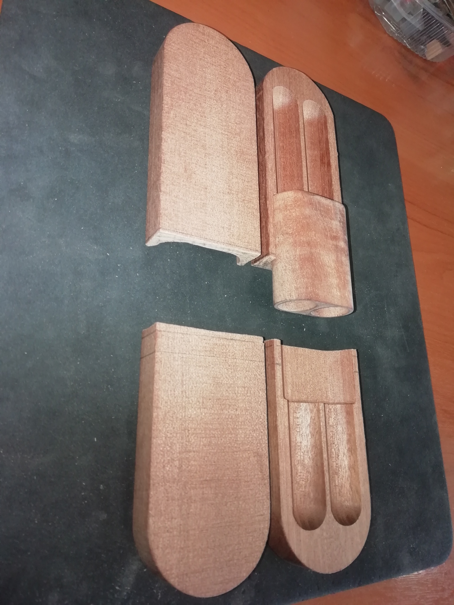 4 футляра для комрада, ныне отбывшего в Персию, для заточных камней в минималистическом исполнении, без украшательств, слева направо: 2 ясеня, сапели, черный орех кавказ (соответственно ЧФ, тюринг, вашита, япнат киита и тома+кома).