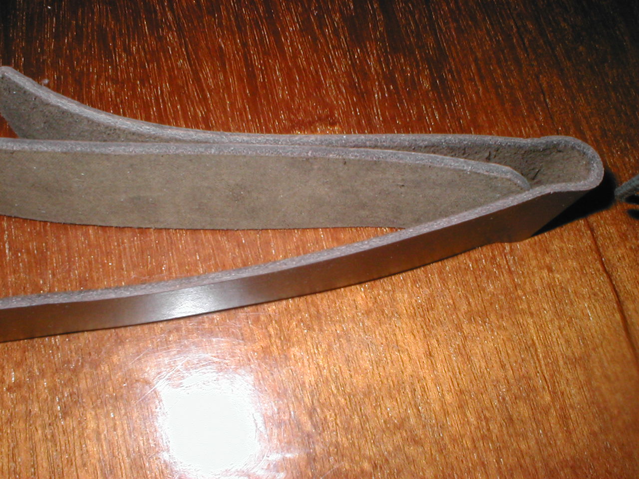 Я ремень с ГОИ храню в отдельной коробке, чтобы избежать пыли. Ведь пасту рукой протирать бесполезно - не уберешь, а пыль может быть в разы крупнее частиц пасты ГОИ. С чистым проще, рукой провел и порядок, хотя тоже хранить в открытом месте не желательно, думаю. В общем, приспособы отброшу. Делать 2 мне не хочется, а одной, как я и подозревал - маловато. Re: Изготовление ремней для правкиВот такой ремешок вчера сделал быквально на коленке.