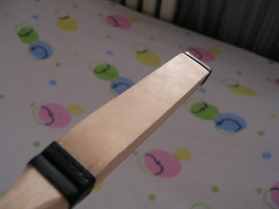 Re: Изготовление ремней для правкиСделал миниатюрную правку на французский манер специально для маленьких бритв.