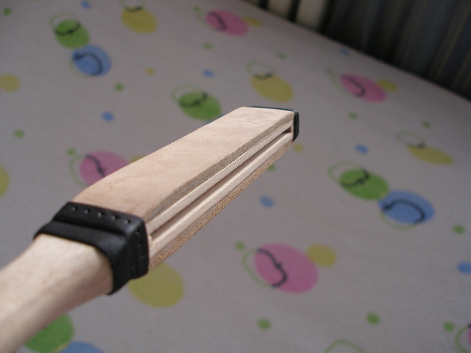 Re: Изготовление ремней для правкиСделал миниатюрную правку на французский манер специально для маленьких бритв.
