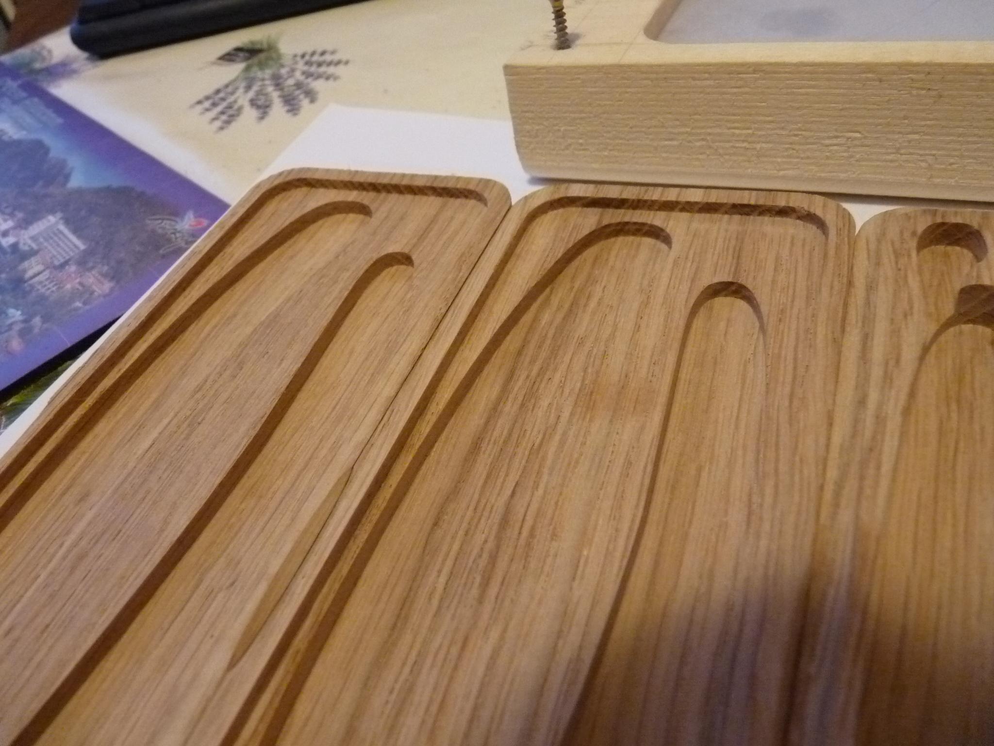 1. Тут попробовал "прогрессивную" съёмку через линзу 10х, не факт, что хорошо получилось, но что-то видно, посмотрим, нужно ли так фотать. 2. Это не окончательный вариант - только обработка "нутрянки" дуба. 3. На осине попробовал закругления - "с полочкой" и без. 4. Все детали дуба только после фрезы, без какой-либо доработки, спецом сделал 2 комплекта - все детали (4шт) абсолютно заменяемы и стыкуемы друг с другом, причем так, как тут и стояли - очень точно ЧПУха "рисует". 5. Обработку внешних плоскостей и граней на дубовых половинках постараюсь добить на этой неделе, постараюсь к субботнему сейшену - чтоб интересующиеся могли б пощупать посмотреть в натуре...