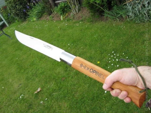 Re: Наши ножиИзвиняюсь - затупил. Общая длина ножа, мм: 500 Длина клинка, мм: 220 Наибольшая ширина клинка, мм: 38 Толщина обуха, мм: 3 Замок: virobloc фирменный замок Opinel Рукоять (материал): дерево Вес, гр: 370 Utile dulci miscere (лат.) — Соединять приятное с полезным.
