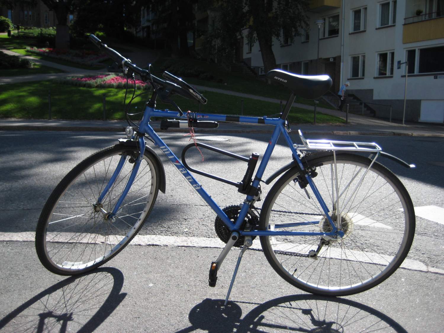 Вот на этом несовременном уже гибриде MIYATA SportCross езжу в тёплое время года. Колёса на 28", рама хром-молибденовая. Купил 9 лет назад, сразу два замка "Basta" поставил (воруют велики).