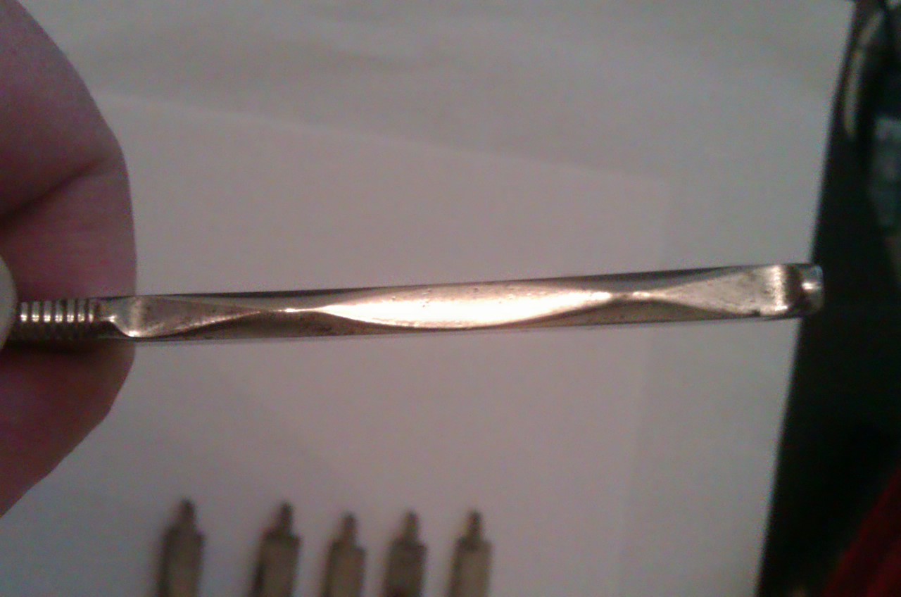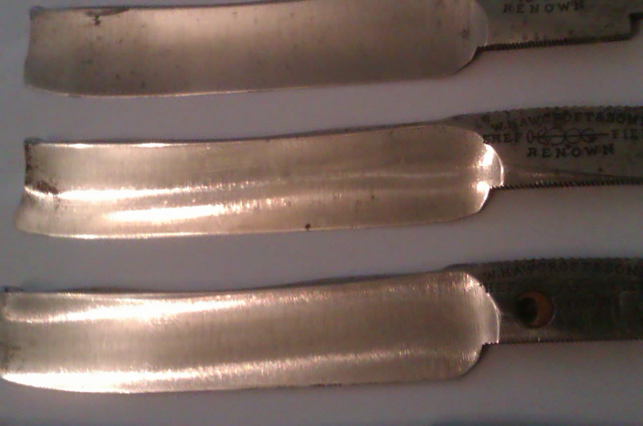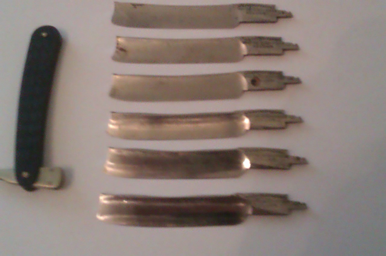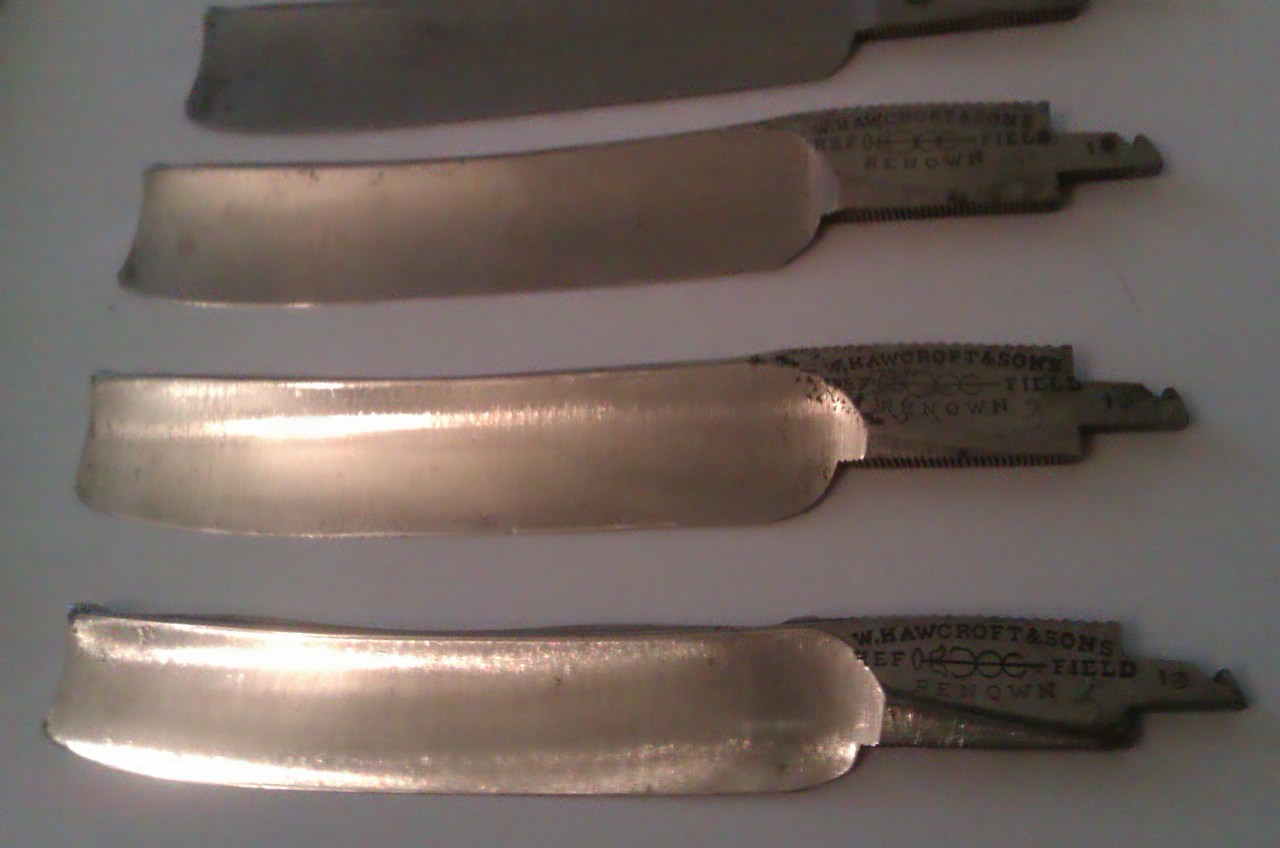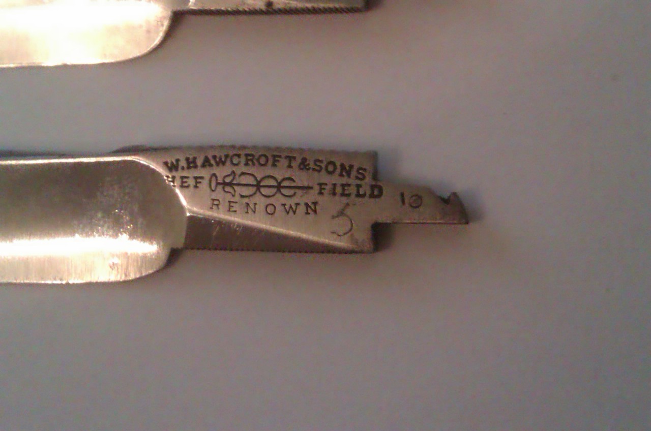 Re: набор W. HAWCROFT & SONА должен быть слон. Ну то так. По клинкам: Набор неполный, вместо семи шесть. Из этих шести можно выбрать 3-4 нормальных клинка. Один кстати просверлен, пытались из него бритву делать.... умельцы. Ручку тоже от вачи видно собачили. Абразива не вижу на клинках. Клеймо да, проштамповали плоховато, не влезло все. Ну брак одним словом. А так баксов 80 в хороший день. Добавлено спустя 1 минуту 34 секунды: Наверняка(больше чем уверен) в замке полотна люфтят со страшной силой.