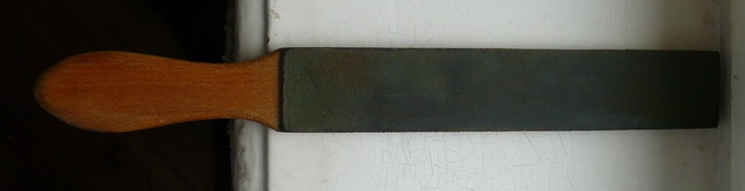 Надо отдать ее на заточку специалисту, а имеющийся ремень после доводки вполне подойдет для поддержания остроты.