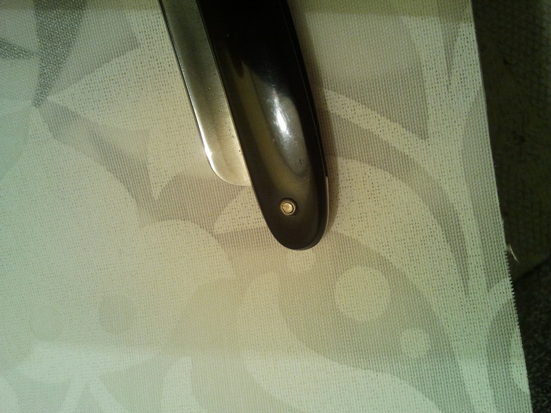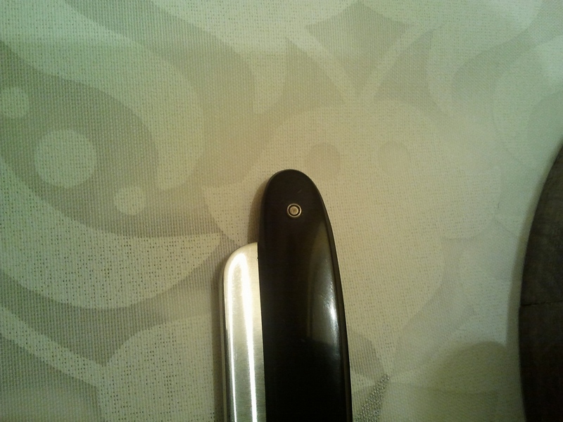 Черный. Немного похуже сохранился чем белый. Видны точки времени и потертости использования. Ручка возможно не родная, пины немного отличаются. Заточена как и первая очень хорошо, не маловероятно заводская заточка.