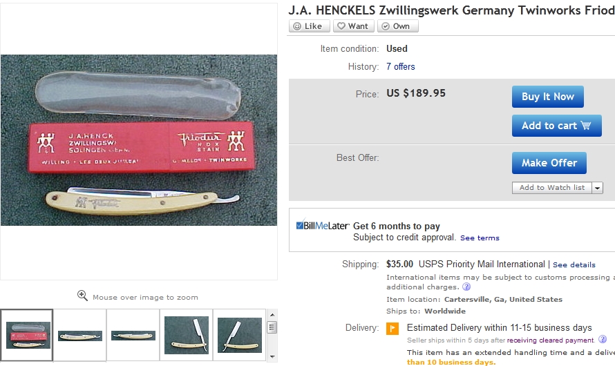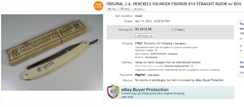 Узнайте или поспорьте о цене своей бритвы или аксессуара. Не важно, хотите ли Вы продать или имеете праздный интерес.