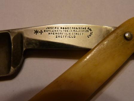 "Just Joseph Rodgers made razors 1837-1901 with stamps: "Rodgers Cutlers to Her Majesty Patent" "Joseph Rodgers & Sons to Her Majesty Patent" "Rodgers Cutlers to Her Majesty No 6 Norfolk St." "Rodgers Cutlers to Her Majesty" - 1837-1890."