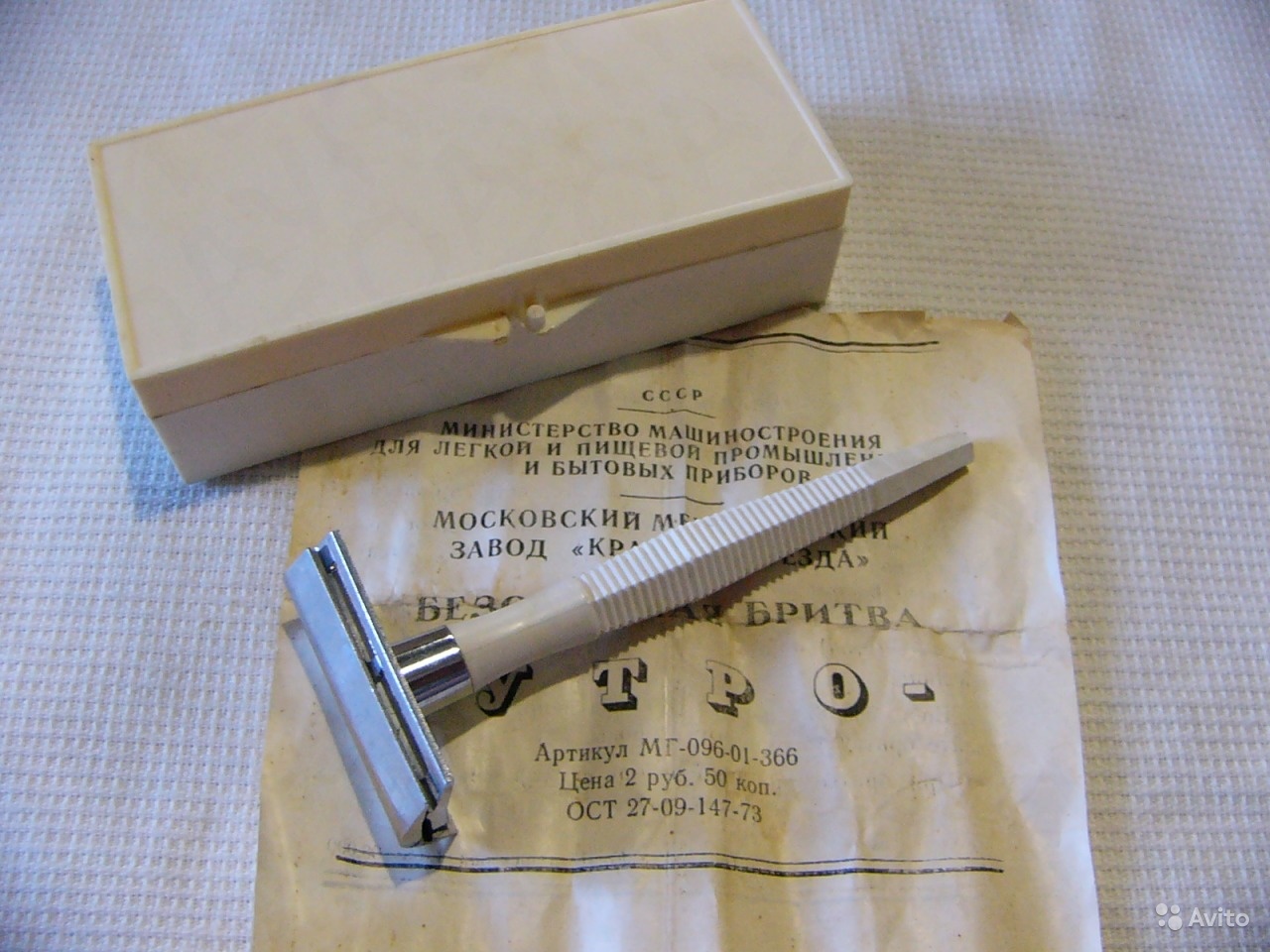 Министерство машиностроения для лёгкой и пищевой промышленности и бытовых приборов СССР. Московский механический завод "Красная звезда", г. Москва, ул. Пушкинская, 32. Безопасная бритва "УТРО" из инструкции: Знаком "треугольник" обозначен угол острого бритья только черная ручка как-то не вяжется с понятием "утро", может этот вариант назывался по другому. Re: Станки производства СССР и постсоветского пространства.Чёрная ручка для понедельника ))). За помощь большое спасибо.