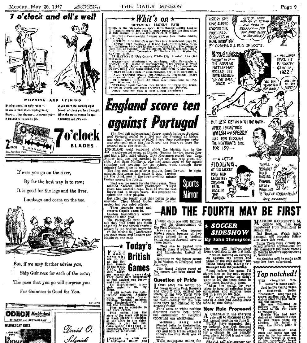 Re: 7 o'clock АнглияПонедельник, 26 мая, 1947 года, Дэйли Миррор. Ссылка ничего не даёт: http://www.mirrorfootball.co.uk/incomin ... REPORT.pdf" onclick="window.open(this.href);return false;