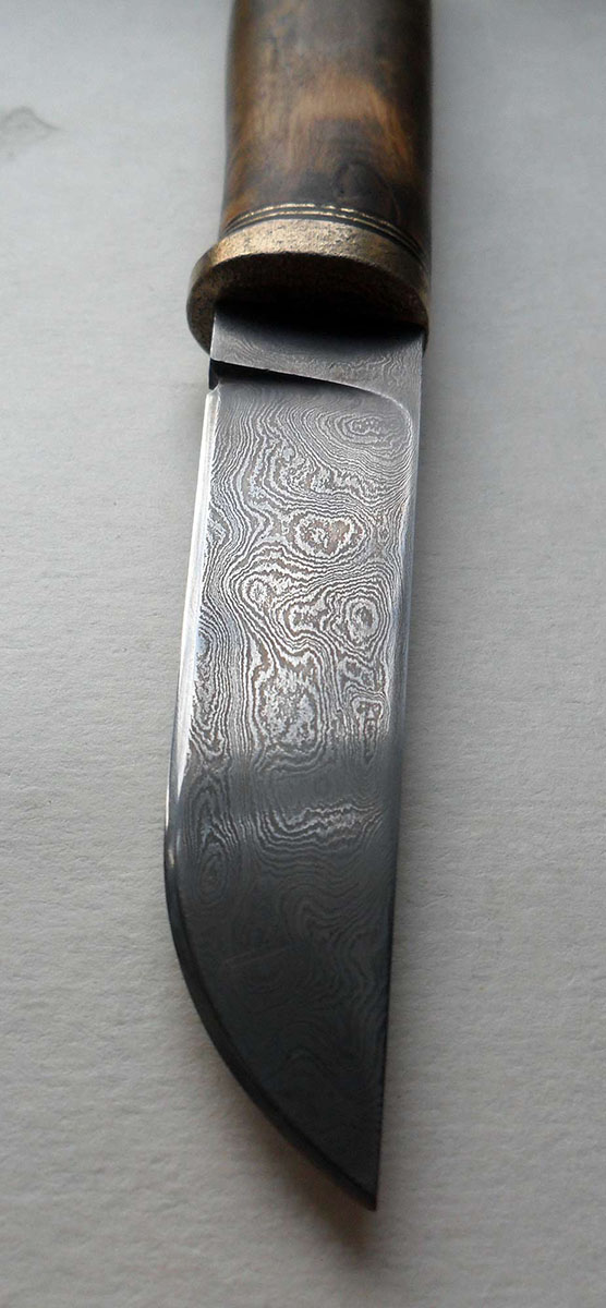 Клинок из дамаска У8А+ШХ15 примерно 300 слоев.