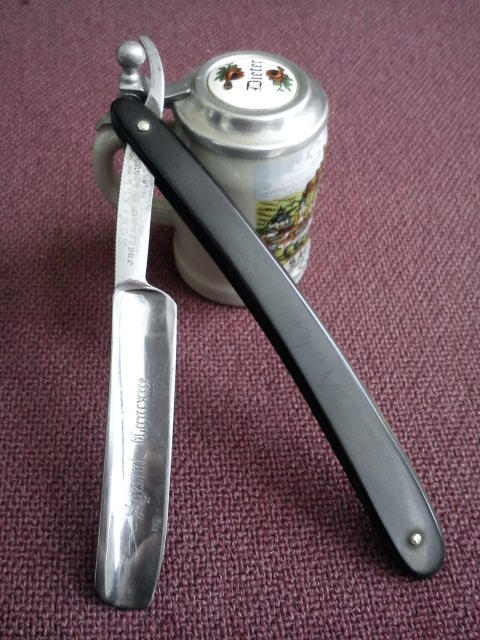 CHARLES EVANS.Вот такой экземпляр попался...обушок 5мм,а ширина лезвия 15мм...Вопрос ..пациент умер?(бритва сточена)...Эрль не пропорционально к лезвию широк....в помойку его