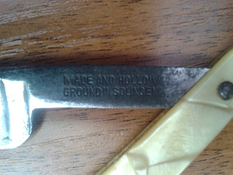 на сколько помню дед говорил что ручку менял так как родная сломалась, но очень дорожил этой бритвой, говорил что парикмахер просил ее выкупить но дед не продовал ни в какую.Привез он ее с Германии, на лезвии что то написано, но уж очень затерто не одной буквы не разобрать.