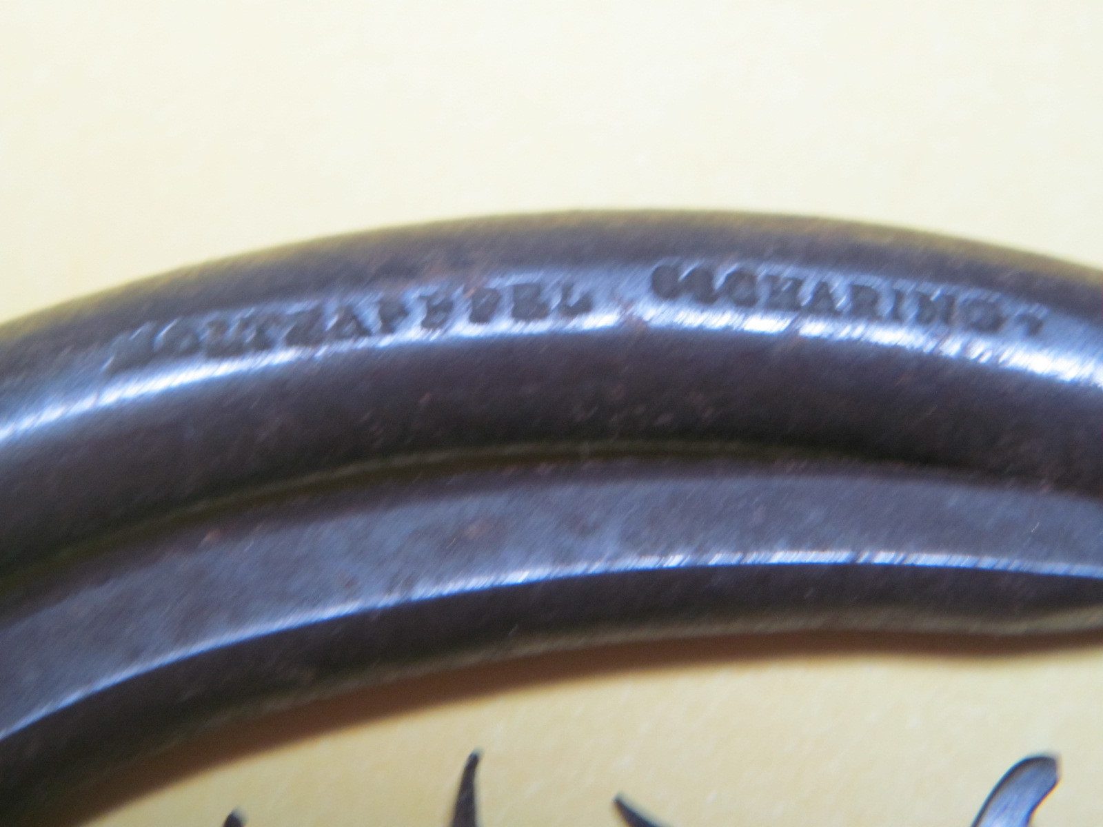 Вторая строчка - начало слова непонятно, на конце буквы ....ARING. Геометрия - "почти" клин, ширина 19 мм. Ручка - рог, клинышек из металла. По виду и материалам я бы сказал, что это Шеффилд конца 19-го века. Но немного смущает явно немецкая фамилия и отстутствие надписи "Шеффилд". Кто привнесет ясность? Какие варианты второго слова?