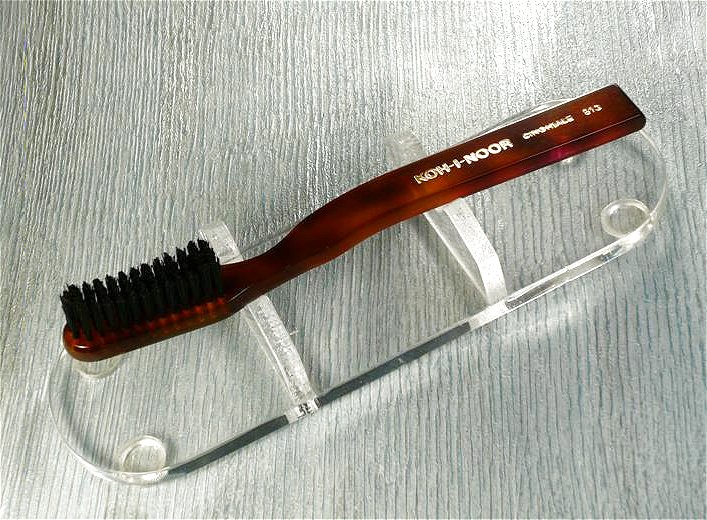Travel shaving brush Koh-i-noor The strength of the wrapping and its cylindrical shape, realized in polished stainless steel, make it suitable to travel with you. The whole body is screwed to the tuft and it is fit to keep it during transport. This way the bristles will be kept perfectly and they will always work the best way. Sizes when closed: cm 8,5 x cm 2,5. When open cm 14 x cm 2,5. Price List: € 55,00 ![]()