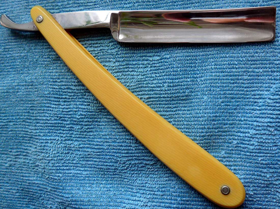 Родная ручка и родные пины. Ручка - очень качественная имитация под кость. Что внешне, что тактильно - очень и очень похоже на натуральную кость. У меня есть немецкие трофейные столовые ножи с ручками из кости. Отличить смог только раскаленной иглой - явно пластмассовый запах. Эх, достать бы где такой пластик для ручек - цены б ему не было. Отдельно хочется сказать о клинке. Понятно, что ощущение субъективно и сравнивать тяжело, но кажется, что это самая острая бритва, которую мне когда-либо удалось заточить. Не знаю, что этому поспособствовало - качественная сталь, геометрия либо день сегодня такой, но заточилась просто замечательно. П.С. кстати, бритва в продаже http://www.britva.ru/forum/viewtopic.ph ... 280#p44280" onclick="window.open(this.href);return false; Spoiler Show