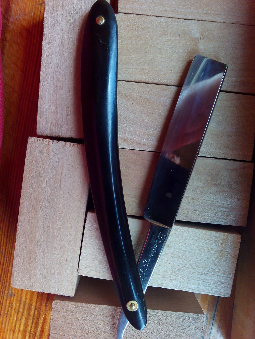БЕНГАЛТолщина обушка 5 мм , ширина 16 мм , длина 75 мм . Есть следы времени . Ручка рог - на фото видны дефекты . Волос рубит .Окончание аукциона 07.07.2016. в 22.00. по Московскому времени . Начальная ставка - 2 500 российских рублей . Ставка любое число . ПРОДАНО