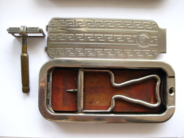 Многоразовая опасная бритва с эргономикой безопасной бритвы и возможностью заточки и правки в собственном футляре. Производство Шеффилд, 1927 г.
