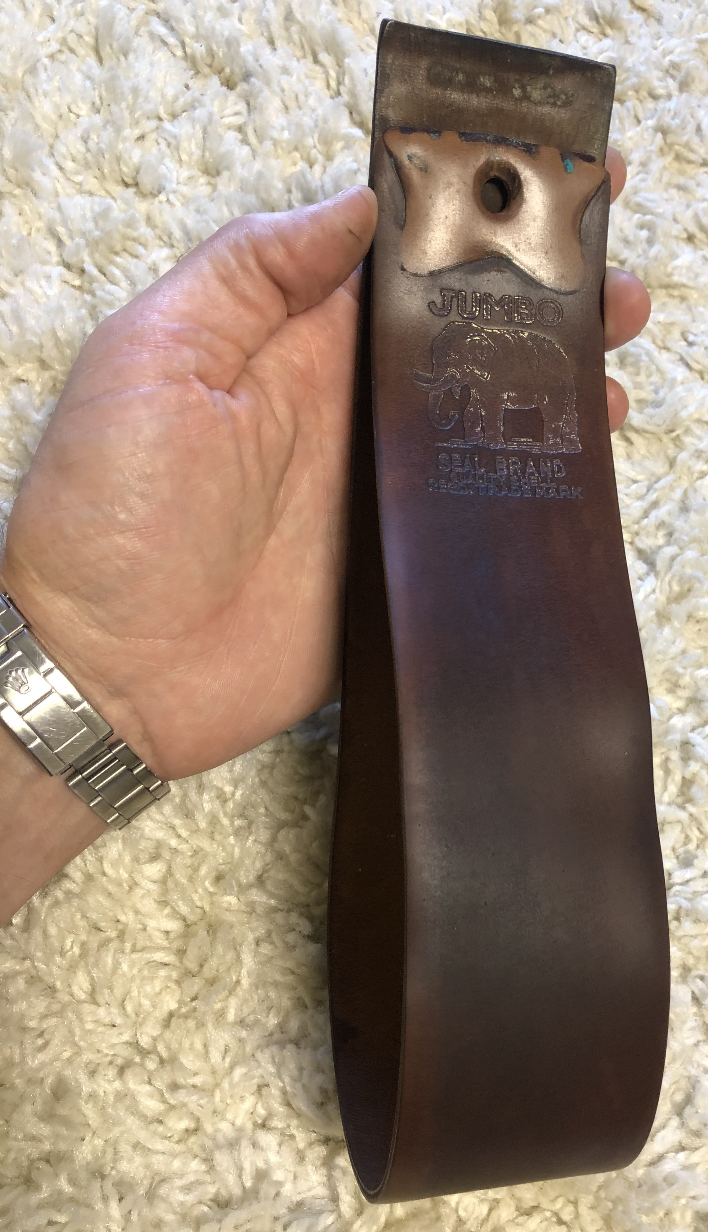 Специально ничего не делал с кожей, чтобы было видно исходное состояние лошади.Немного суховат,жестковат, хотя эластичность сохранилась. Есть микротрещинки на обратной стороне кожи. Сам кордован в хорошем состоянии,без порезов, шрамов, заломов и др.Требуется шлифовка и пропитка костным маслом. После реставрации можно использовать в качестве подвесного ремня, либо , что ещё лучше, в качестве колодочного или натяжного.