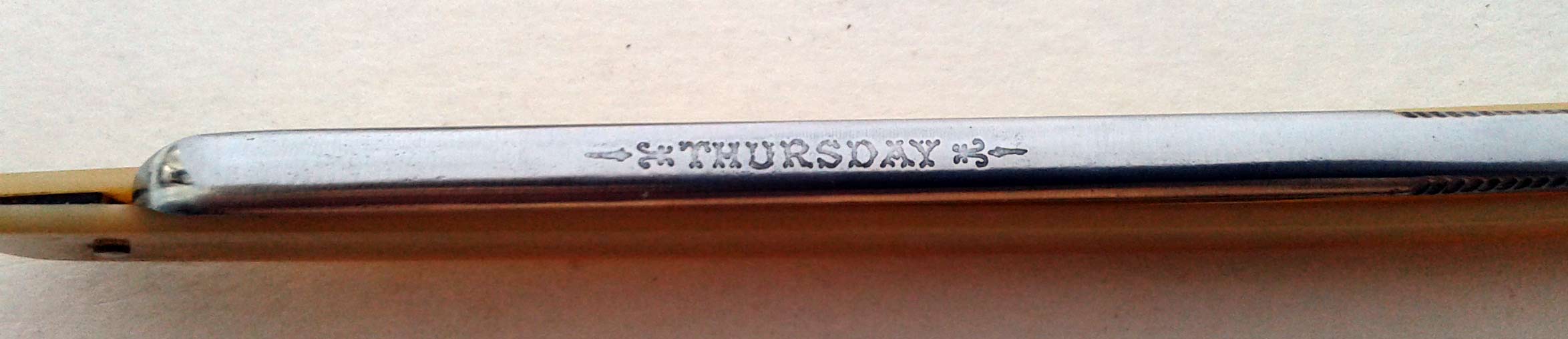 Надпись на обухе THURSDAY