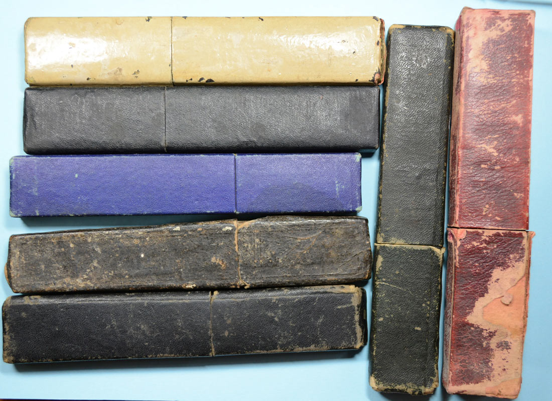 Один футляр на 2 бритвы, 1 типа "гробик" Ford&Medley, 3 безымянных с вензелями - скорее всего, от старых англичан, 1 американский и 1 безымянный.