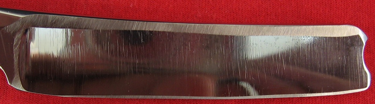 Бритва произведена в Англии, г. Шеффилд в 1818-1890 гг. Сколок, трещин нет. Ручка прессованный рог, частично "выгрызен", закрывается не плотно, ровно. Были произведены работы по удалению трещинки на полотне, т.е. произведена грубая заточка с удалением большого количества стали, режущая кромка более-менее сведена, то есть после полной заточки форма бритвы практически не изменится. Общее состояние прошу смотреть на фото и видео.