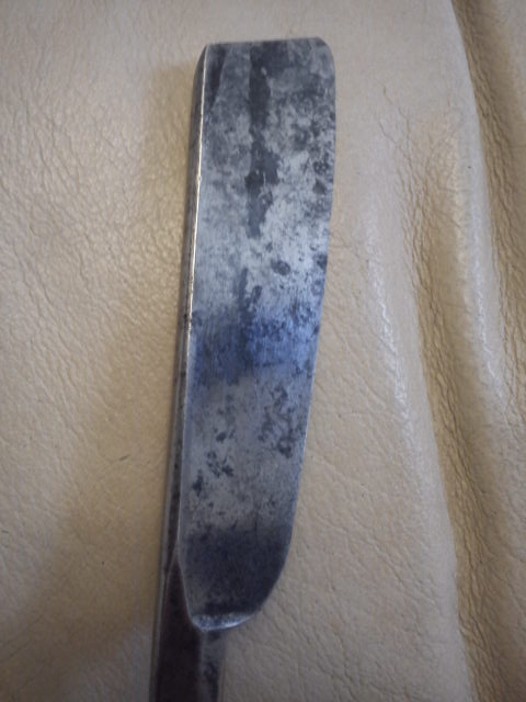 Очень старинная и ржавая.Длина лезвия 145 мм,ширина 20 мм -15 мм(она не сточена,форма такая,скошена),обушок 5 мм.Состояние на фото.