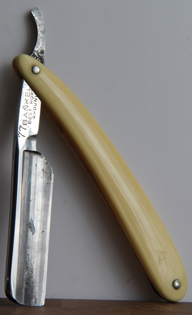У некоторых моделей бритв эрль и хвостик закрыты целиковым куском слоновой кости. Большинство других производителей бритв обычно приделывали пластину слоновой кости к каждой стороне эрля и хвостовика. При взгляде на бритву сверху были видны щели между слоями слоновой кости и металла. Шестьдесят лет спустя современные коллекционеры замечают в этих щелях уродливые пятна ржавчины. В варианте Хенкельс видно, что в целиковом куске слоновой кости пропилен желоб, в который точно входят эрль и хвостовик. Обычно металлическая часть заканчивается сразу за заклёпкой, хвостик же остаётся почти полностью из слоновой кости. При взгляде сверху и сбоку можно увидеть только слоновую кость. «Сэндвич» из металла, облачённого в слоновую кость можно обнаружить только при взгляде снизу.