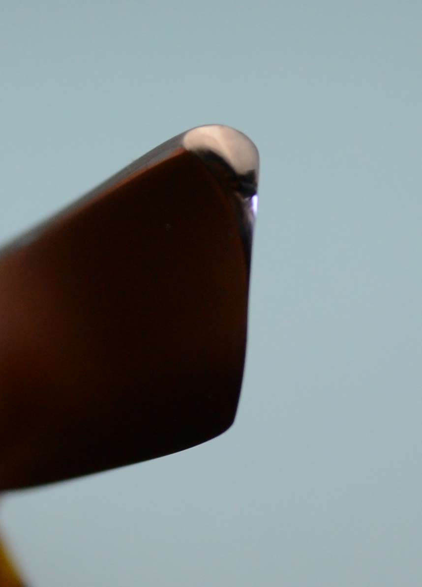 головка лезвия, насколько удалось понять из описаний на вашем сайте, нетипичная: от лезвия вверх сначала идёт перпендикулярно вверх (примерно до середины), а затем переходит в небольшое полукруглое углубление, заканчивающееся небольшим откосом к спине