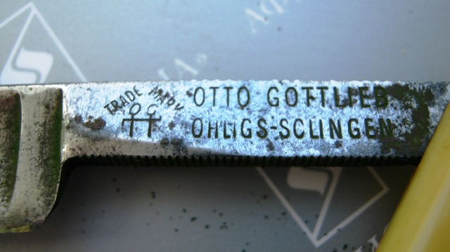 Re: Все фирмы из Золингена и оканчивающиеся на "So"...Дополняю список на SO. Появилась недавно у меня бритва 5\8 OTTO GOTTLIEB, и на ручке у ней OGOSO.Далее на фото. Сведений по данной марке не имею,если кто знает осветите. Извиняюсь за вид,не успел отполировать.