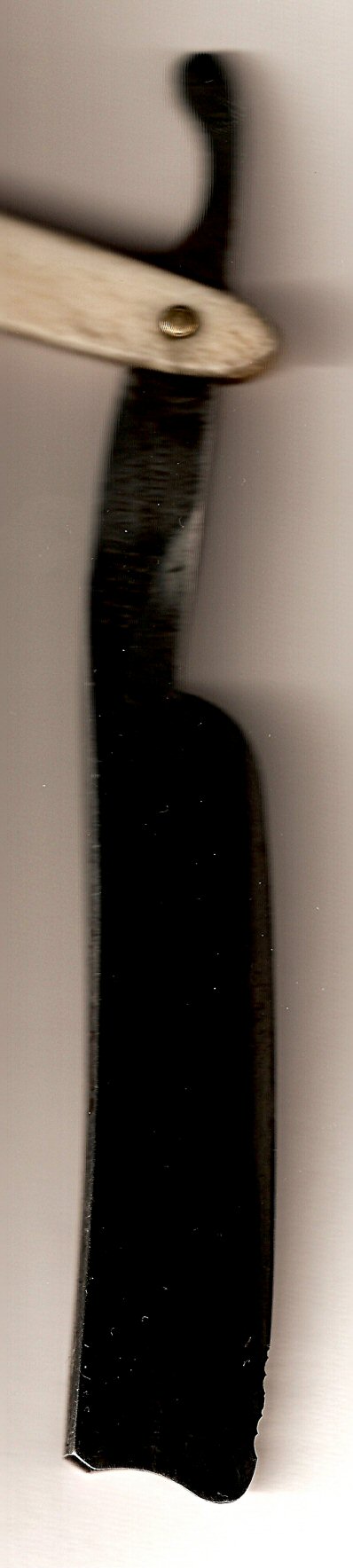 Прокладкой между частями ручки служит свинцовый металл. К сожалению, такие перламутровые ручки довольно хрупки. Большая удача для современного коллекционера – найти образец этой красивейшей ручки без трещин и сколов. Мне повезло найти две такие бритвы, но обе были со сломанными ручками. Было отмечено, что ручки были разных размеров под разную ширину бритв.