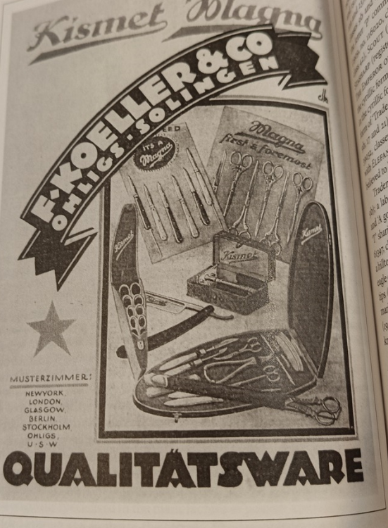 YOUTUBE Олег Бритва INSTAGRAM Олег Бритва Re: F Koeller & Co StahlwarenfabrikГ-н Олег Бритва , это я в смысле посильной помощи, добавление F. Koeller & Co., Solingen-Ohligs in 1932. Brand names: