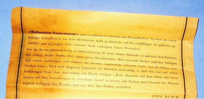 Re: Otto Busch, solingen-waldНа последних фотках - это новодел? И что можно сказать о этой бритве? Какая сталь, хромистая, углеродистая?