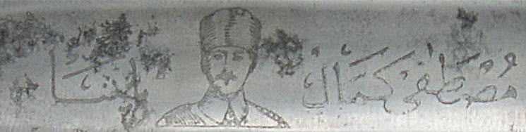При помощи логических размышлений было установлено, что на бритве изображён какой-то правитель Турции. После недолгих поисков и перевода с русского на арабский разнообразных слов типа "Турция", "султан" и "шах", логика и интернет привели к слову Кемаль. Итак...