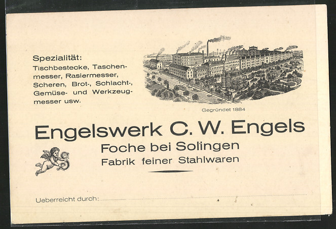 Фабрика занималась производством опасных бритв, карманных ножей, ножниц и других ножевых изделий. Владельцем фабрики в 1914-20 годах был Эмиль Энгельс, а в 1939 - Эмиль, Вилли и вдова Матильда Энгельс.