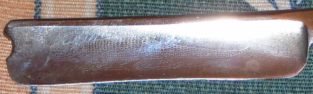Бритва интересна тем, что на лезвии имеется рисунок выполненный по видимому машинным способом (ИЛИ ЭТО КЛЕЙМО ПРОИЗВОДИТЕЛЯ) в виде полноразмерного крокодила с открытой пастью.