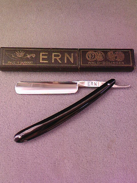 Купил сегодня вполне заурядный ERN, с в хлам ушатаной оправой, в интересном жестяном футляре. Поиск ничего не дал! Выдает какието бразильслие сайты, ничего общего с бритвами!