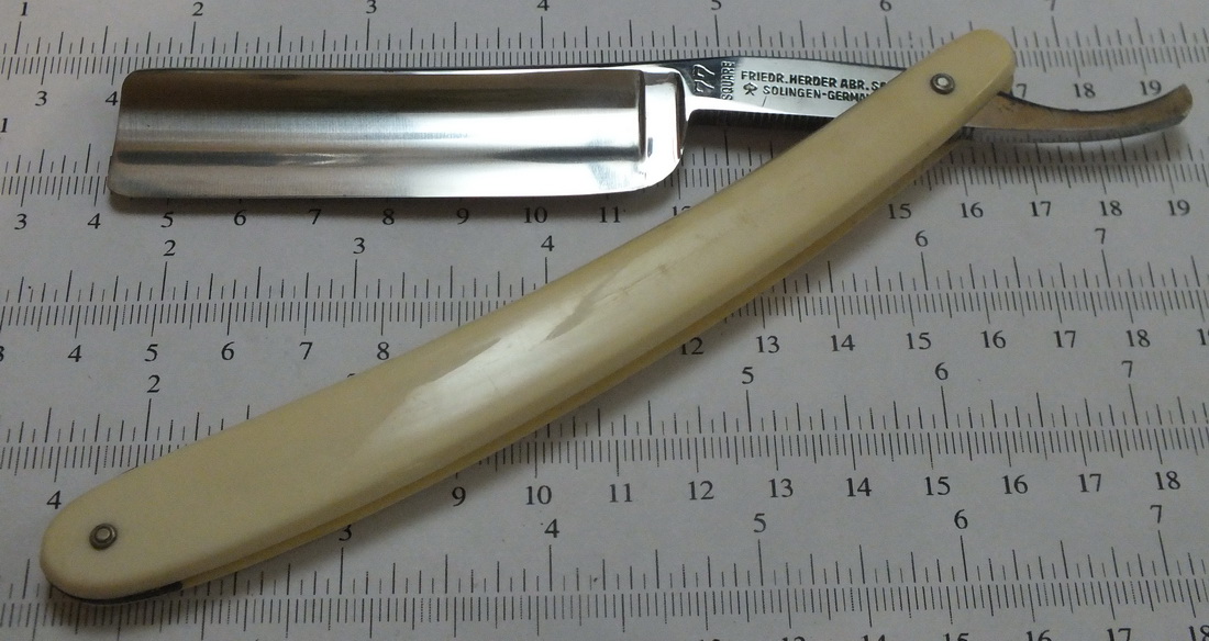 F. Herder Abr. Sohn N°172, 6/8. Досталась много лет назад на барахолке в грустном состоянии с побитой целлулоидной рукояткой наихудше возможного золингеновского дизайна.