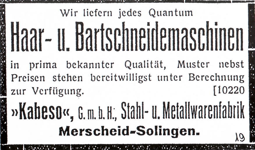 Все говорят, но немногие знают, в каком. Re: Kabeso, Solingen.Из польского патентного журнала, 1925 и 1937 годы. фабрикант C. Becker jr. Spoiler Show Kabeso, Solingen.Еще пара капель:
