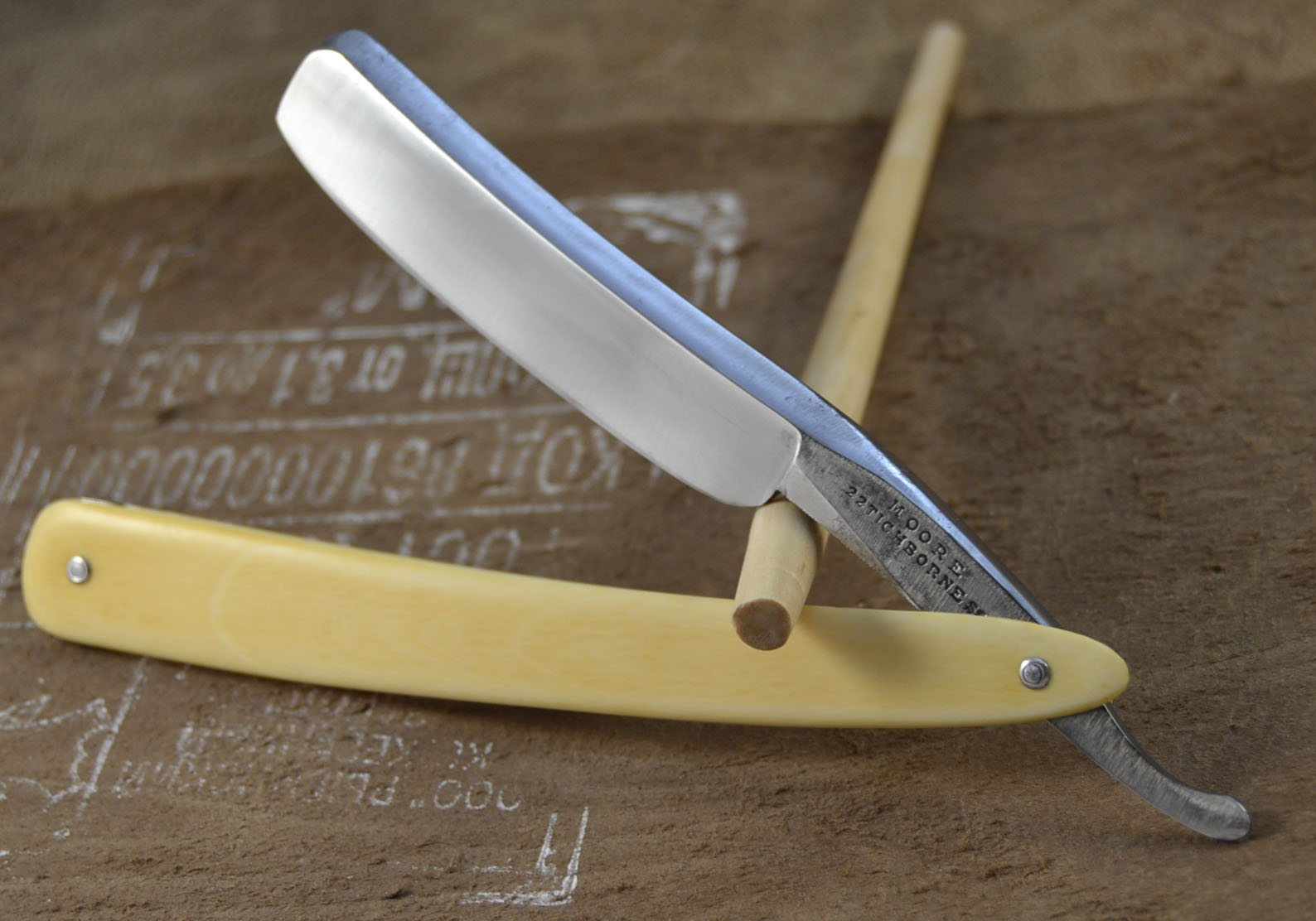 А бритва между тем очень классная, трехгранный обушок, массивный эрль, сталь показавшаяся несколько тверже, чам на большинстве старых шеффилдских клинов и геометрия очень понравились, опять же рукоять из слоника, хоть и потрепанная но вполне живая.