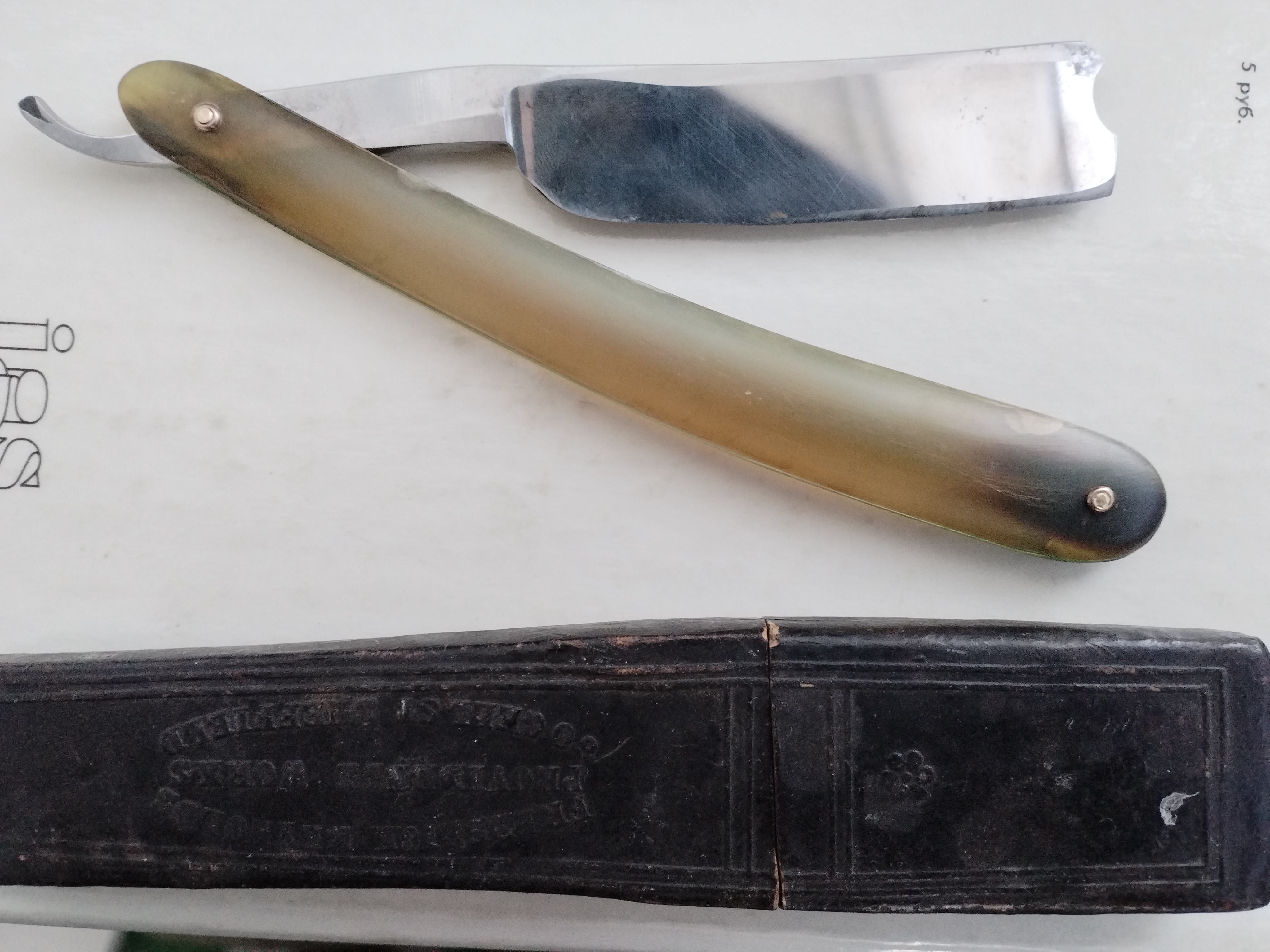 "Frederick Reynolds", Sheffield. (!*)Лежала несколько лет, совершенно новая бритва. Изрядно выпив, решил заточить. Уронил. В итоге трещина 10мм. С тех пор, уже лет 10 не точу под мухой.