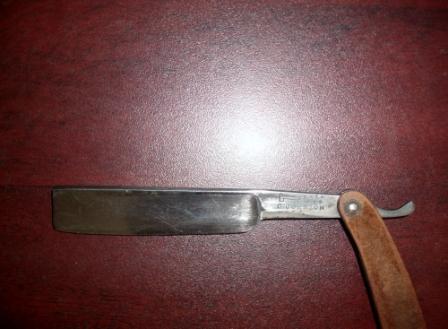 Бритва от деда, помогите определитьВыпросил сегодня у знакомого дедули бритву непонятного толком производителя и неопределенного возраста. Бритва принадлежала человеку, который родился где то лет 100 назад в Тверской губернии, отцу моей учительницы. Бритва на мой взгляд кустарного производства, ручка из рога или кости. Имя видно не полностью - inson (впереди возможны еще одна-две буквы) и семь звездочек. Есть еще знак, похожий на цифру, точнее половинка знака, возможно - 3. Насечек снизу эрла нет, сзади знаков нет. Может кто сможет определить, что за бритва. Дедуля сказал, что возможно дореволюционная.