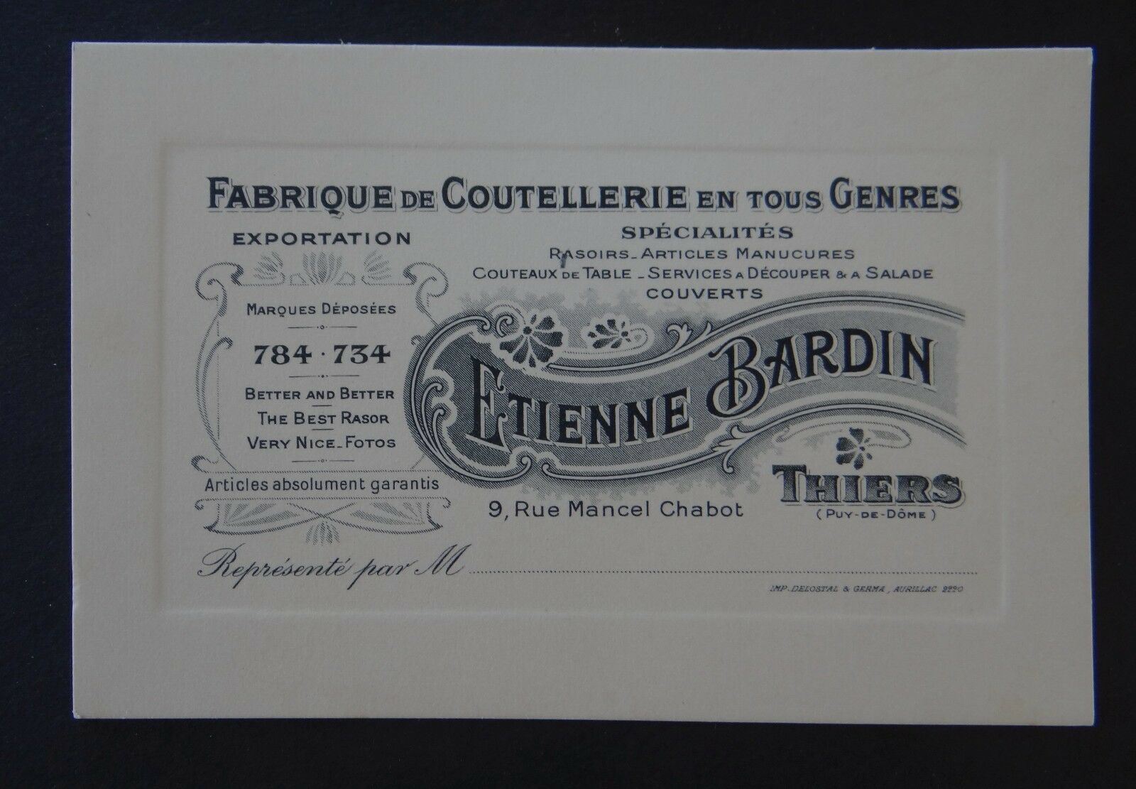Ε. Bardin & G. Douris (Trade mark FOTOS)Обзавелся вот таким великолепно сохранившимся экземпляром, модель "784". Оригинальный заводской сатин. Ручка - целлулоид. Пины - вероятно сталь (белый металл), внешние шайбы - латунь. Ширина клинка слегка увеличивается от пятки к носку, как на старых французских клинах. На заточке геометрия клинка показала себя с самой лучшей стороны.