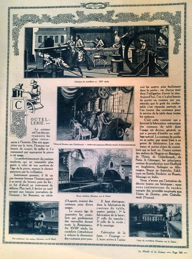 LE MONDE & LA SCIENCE , научно-популярный журнал, представил в 1910 году столовые приборы CHATELLERAULT.