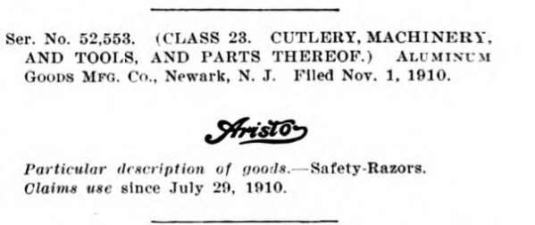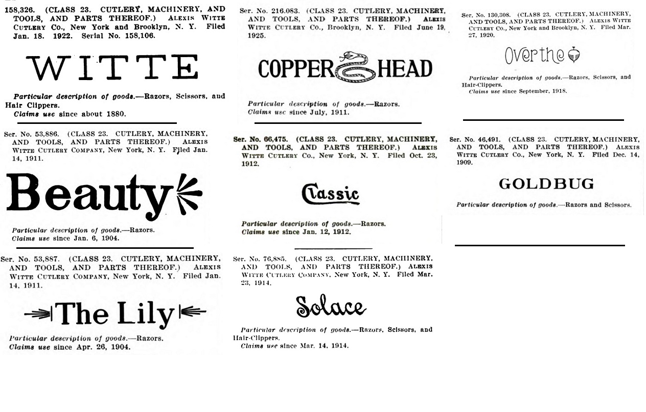 Пролистав Official gazette of the United States Patent Office, решил выписать от туда все фирмы, которые имеют отношение к бритвам (многие к безопасным бритвам) и скопировать их торговые марки.