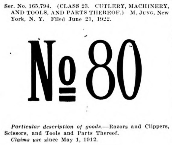 Торговая марка No 80 используется с 1912 года, перерегистрирована в 1922 году