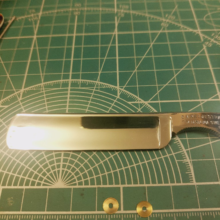C.V. Heljestrand, EskilstunaДа, меня тоже оправа смутила - больше нигде не смог найти фотографию в такой оправе, но предположил, что возможно это из совсем старых мало сохранившихся экземпляров. Ещё смутила раковина на пяточке, как по мне в таких местах она появляется на бритвах уже бывших в пользовании.