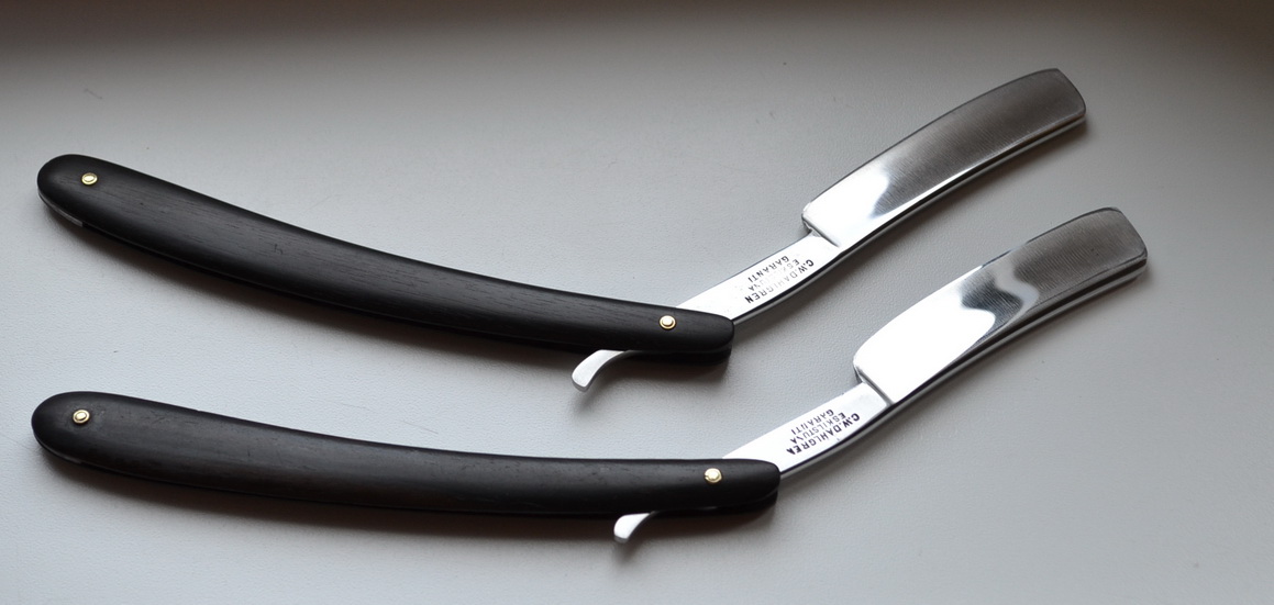 Действительно интересные бритвы. Тот что в кости имеет отличную геометрию, фаска ровненькая и тонкая. Re: C.W.DAHLGREN ESKILSTUNA SWEDEN 1878г.Два широких клина. Оба в дереве(эбен), оба 6/8. Клинышки - олово. Прекрасные экземпляры.